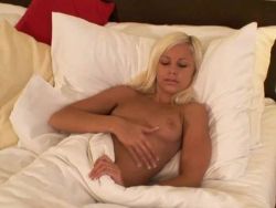 Im Hotelbett besorgt es sich das blondierte Girl alleine